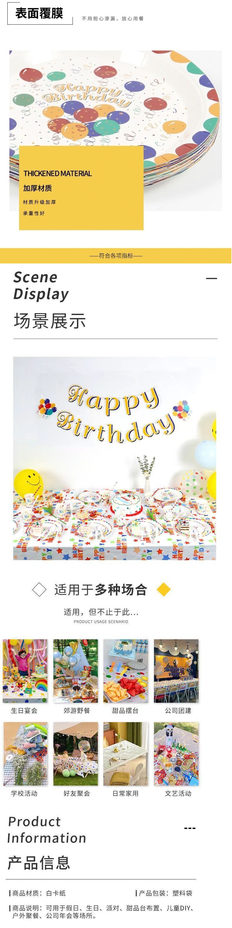 Picnic Disposable Tableware Birthday Party Paper Plate Tablecloth Cake Plate Children Dessert Table Decoration Scene Layout